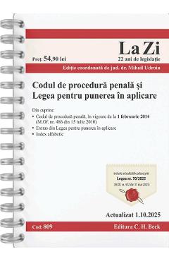 • Codul de procedura penala si Legea pentru punerea in aplicare Act. 1 octombrie 2025 Ed.Spiralata - Mihail Udroiu - C.H. BECK